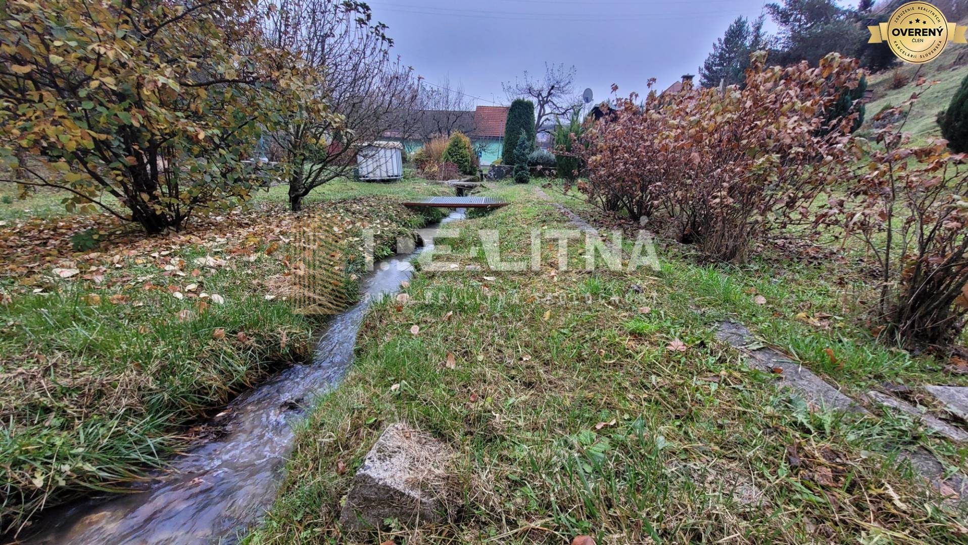 ➤Charakteristika: Cez prednú, rovinatú časť pozemku preteká malý potôčik s šírkou 1 meter, ktorý dodáva priestoru jedinečnú atmosféru. Zvyšná časť pozemku je svahovitá, čo umožňuje kreatívne využitie terénu.