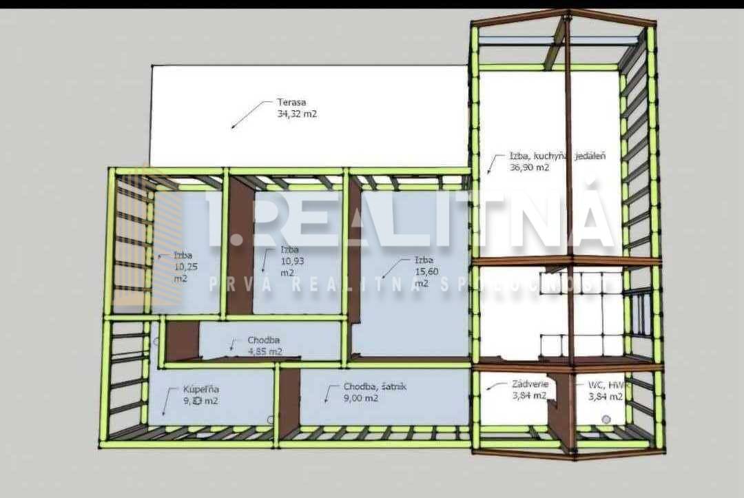 • Terasa 34 m² orientovaná na severovýchod – ideálna na rannú kávu alebo rodinné posedenie